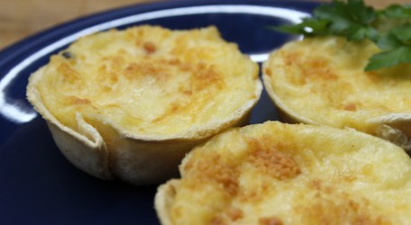 Pueden ser canastitas de salsa blanca y choclo, espinacas hervidas o con salsa blanca, jamón y queso o lo que se nos ocurra. También pueden prepararse vacías para presentar una guarnición de un chutney o un puré. Y no sólo pueden emplearse para una guarnción, ya que acompañadas de una ensalada se convierten en una entrada o un almuerzo liviano.